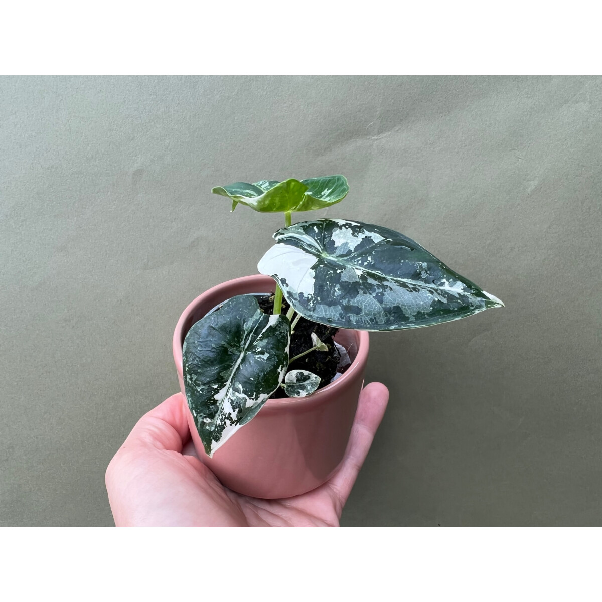 Alocasia Frydek Variegata is a rarity that has white variegated leaves. You will receive a beautifully variegated plant in a 6cm pot.