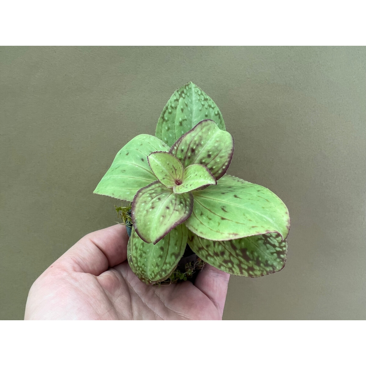 Very nicely marked Sonerila species, ideal for warm and humid terrariums. It is a great eye catcher for any rainforest terrarium. The plants grow well in moist sphagnum moss and are true rainforest plants that add a unique character to your terrarium.